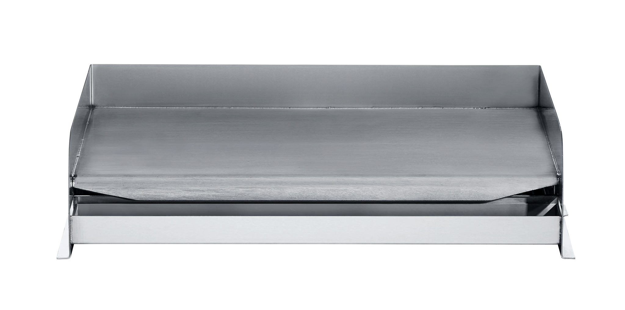 Constructed of 5/16" thick cold rolled steel with stainless steel splash guards and removable stainless grease tray. Made especially to fit Crown Verity BBQs - just slide the roll dome out of the tracks remove the cooking grates & replace with the griddle – such versatility!
