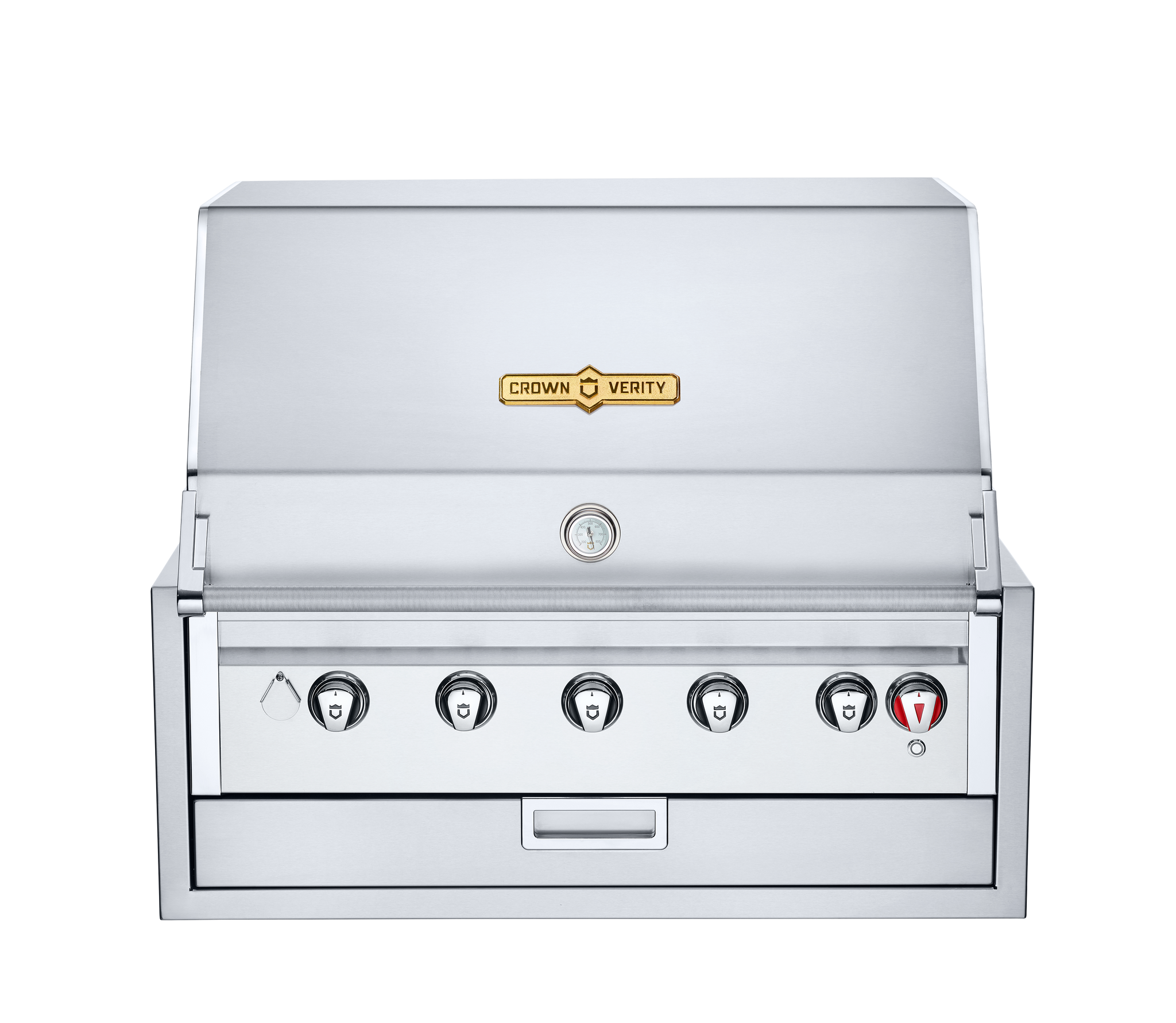 The Infinite Series 36" built-in grill features five (5) 14,750 BTUH stainless steel burners and are placed every 5.75" to ensure the most even cooking surface, allowing the grill to heat to temperature within 5 minutes. Includes bun-rack, and heavy-duty custom fitted cover.