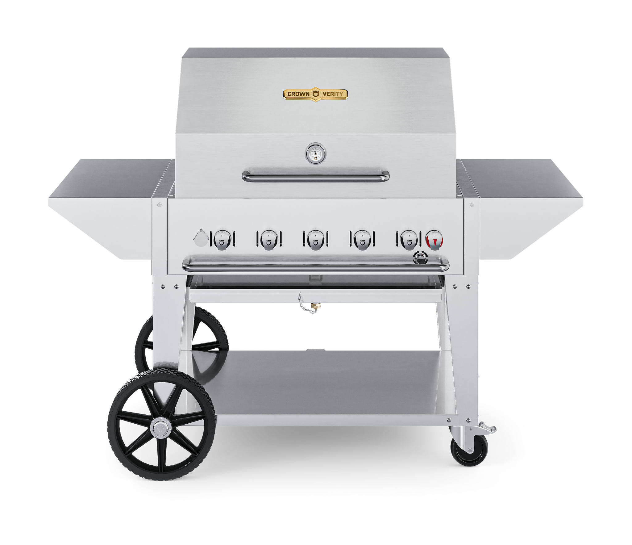 Ideal for the smaller caterer or restauranteur, this grill is a very capable starting point with its commercial size. It can be individualized by adding items from the long list of add-on accessories. The grill features five burners for maximum control and impressive fast heat recovery. Pictures shown are for illustration purposes only. Actual product may vary due to product enhancement. Includes dome, adjustable bun rack, 2 removable end shelves, and BBQ cover.