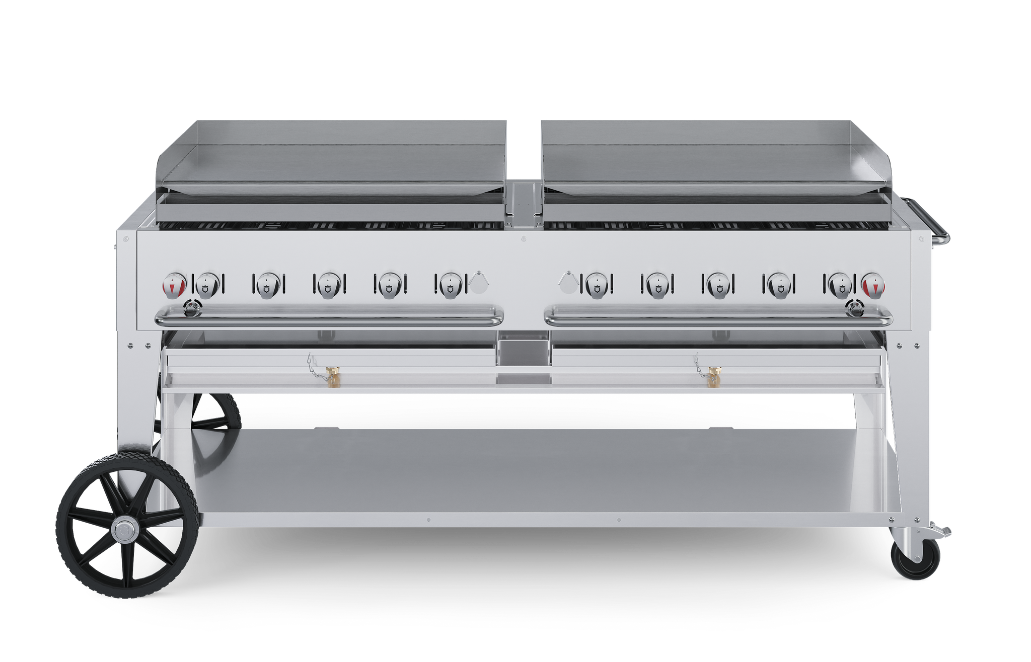 This Mobile Griddle is designed to cook high volumes of product in a short period of time and is built to convert with ease into a Charbroiler for dual function use. Griddles are constructed of 5/16” cold rolled steel with stainless steel splash guards and a removable stainless steel grease tray.