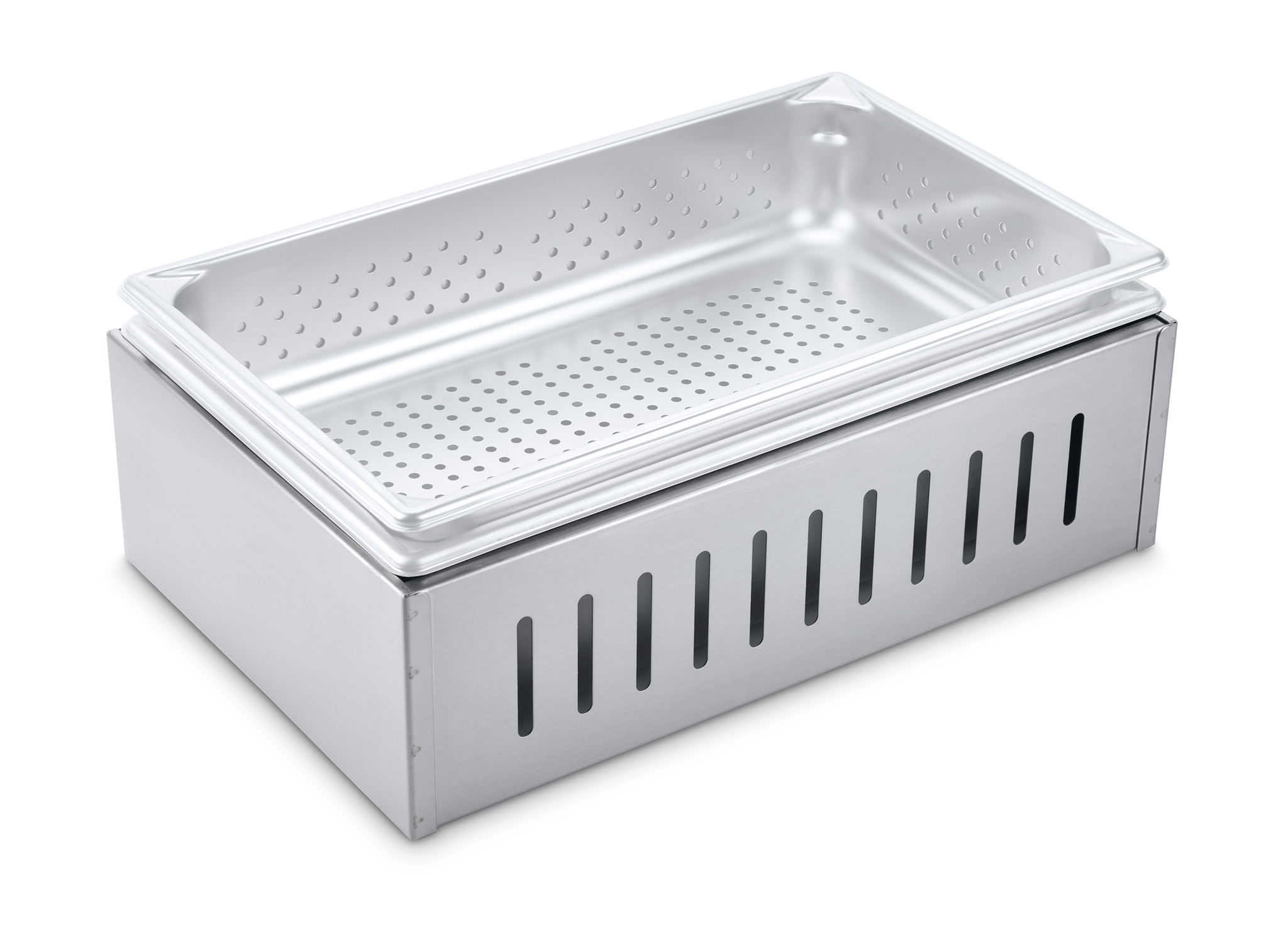 The Steam Pan Adapter allows the unit to be used as a hot food table and holds food at a preferred temperature. Each steam pan adapter will hold one set of pans. Water pan, insert pan, and cover pans are not included with the SPA option. Pans not included.